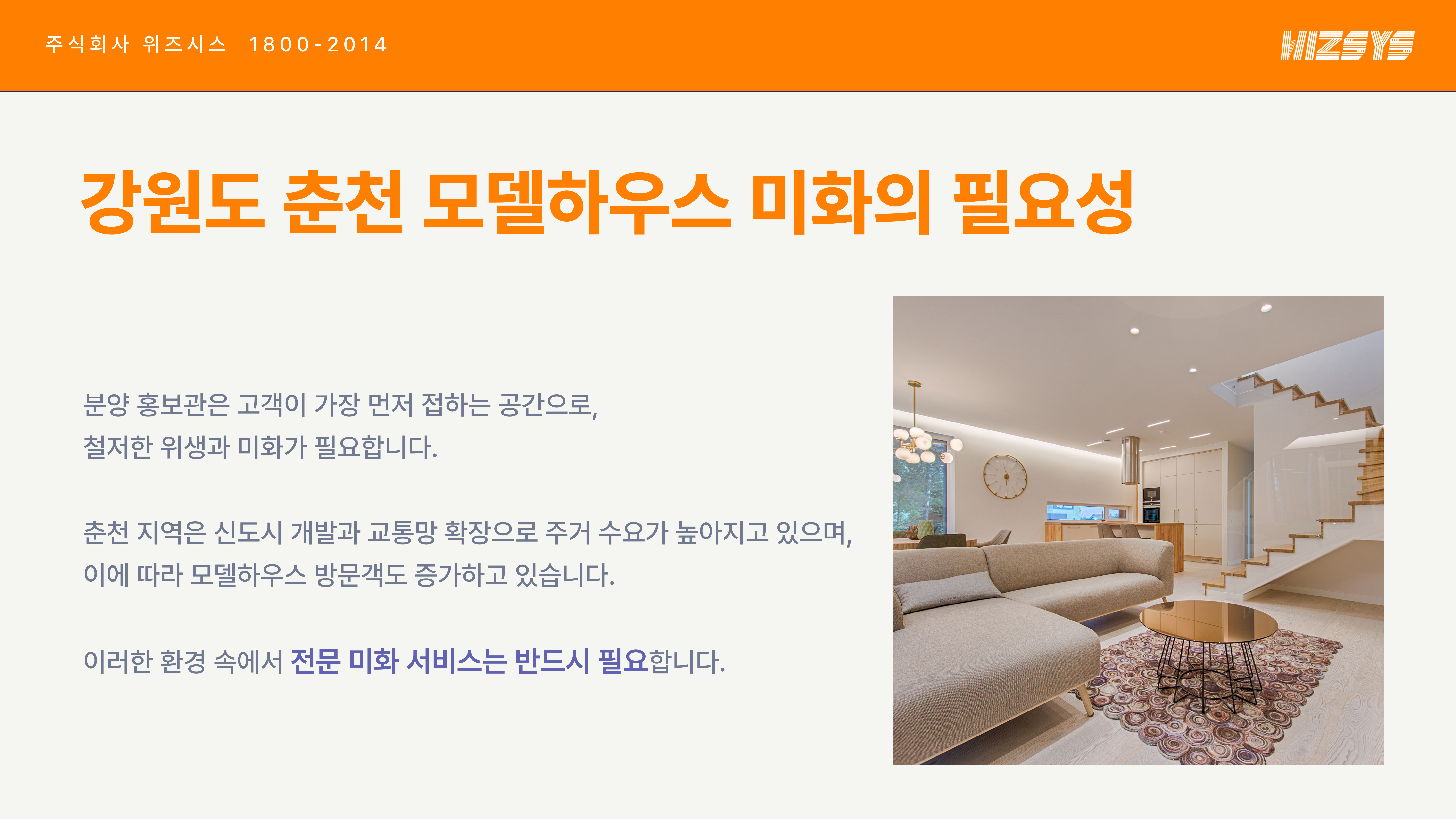 분양 홍보관(모델하우스) 미화 서비스를 전문으로 제공하는 위즈시스(WIZSYS)입니다.