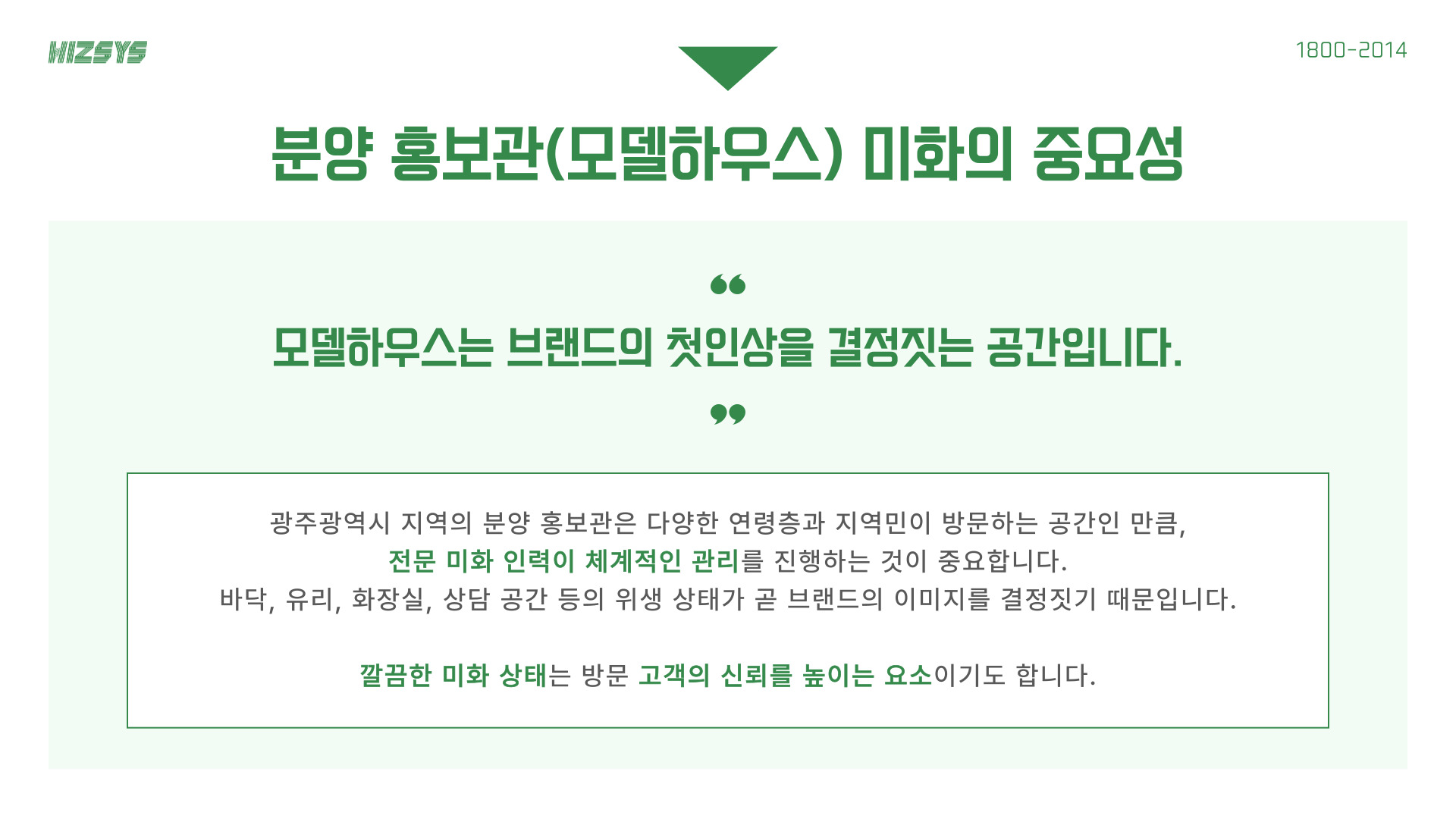 광주광역시 지역에서 분양 홍보관(모델하우스) 미화 서비스를 찾고 계신가요?