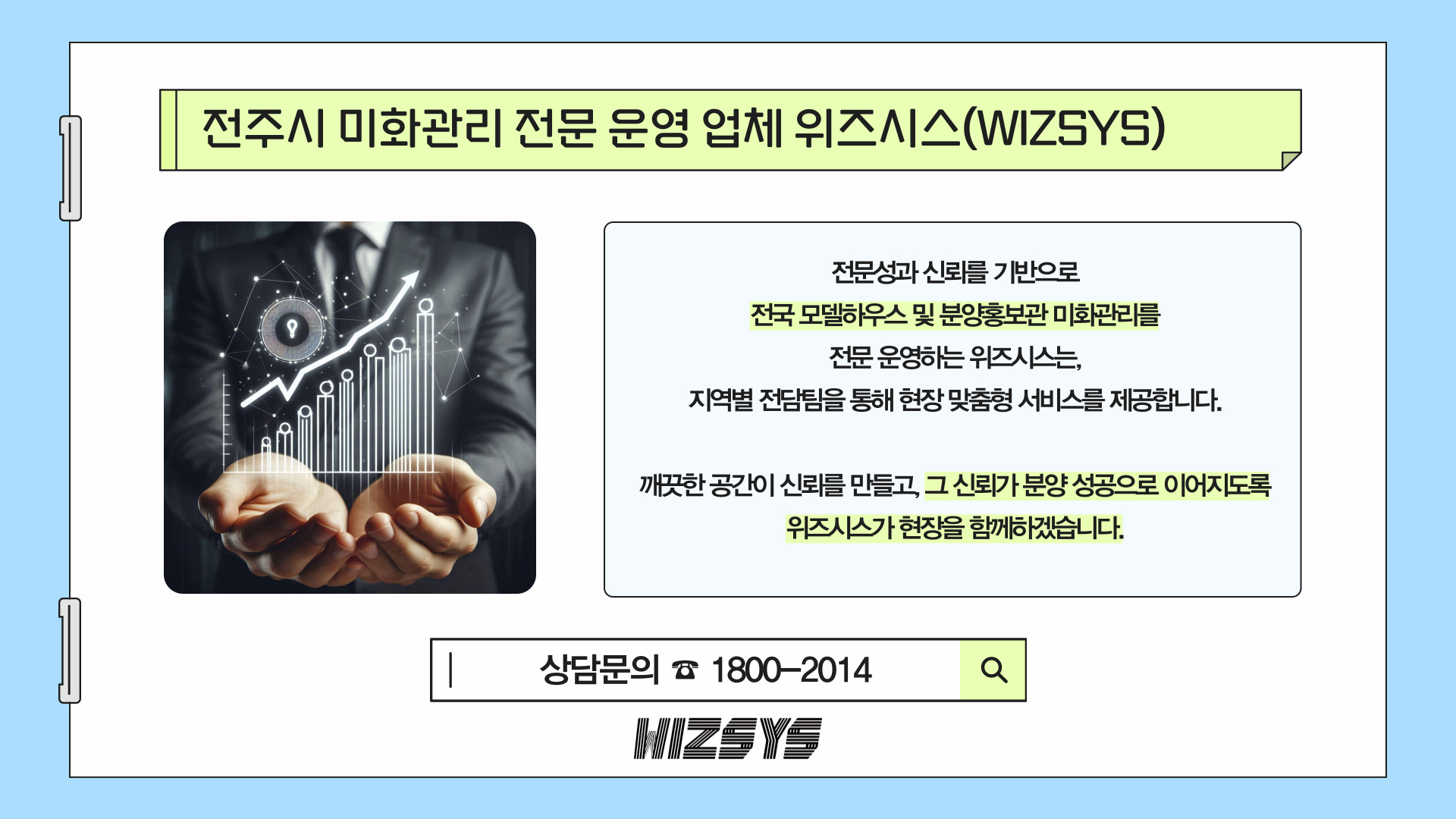전국 모델하우스 및 분양홍보관 미화관리 전문기업 위즈시스(WIZSYS)입니다.