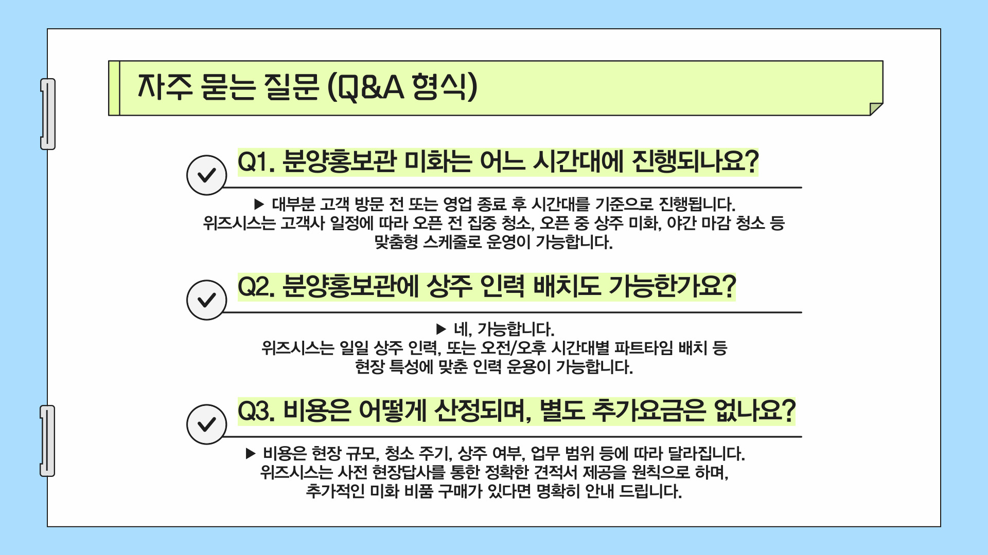 Q2. 분양홍보관에 상주 인력 배치도 가능한가요?