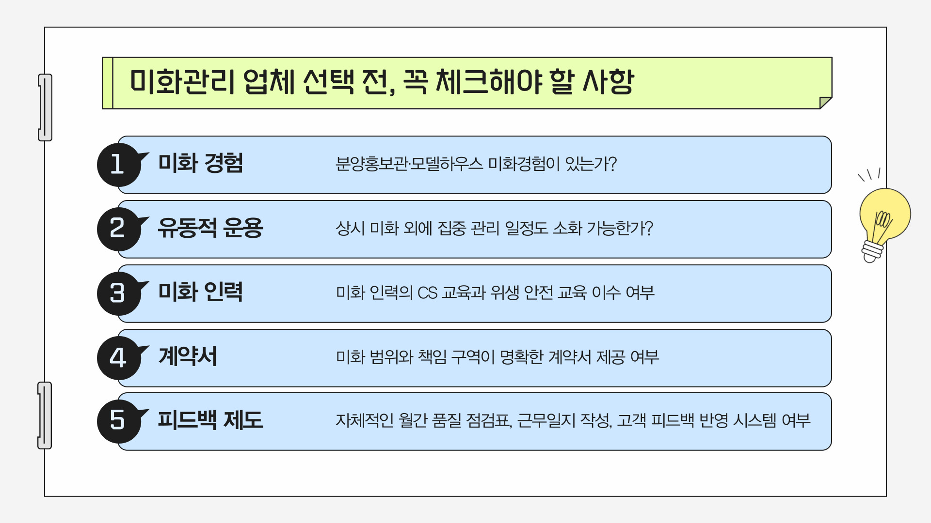신뢰 가능한 운영체계 + 현장 이해도 + 응대 품질이 갖춰진 업체를 선택해야