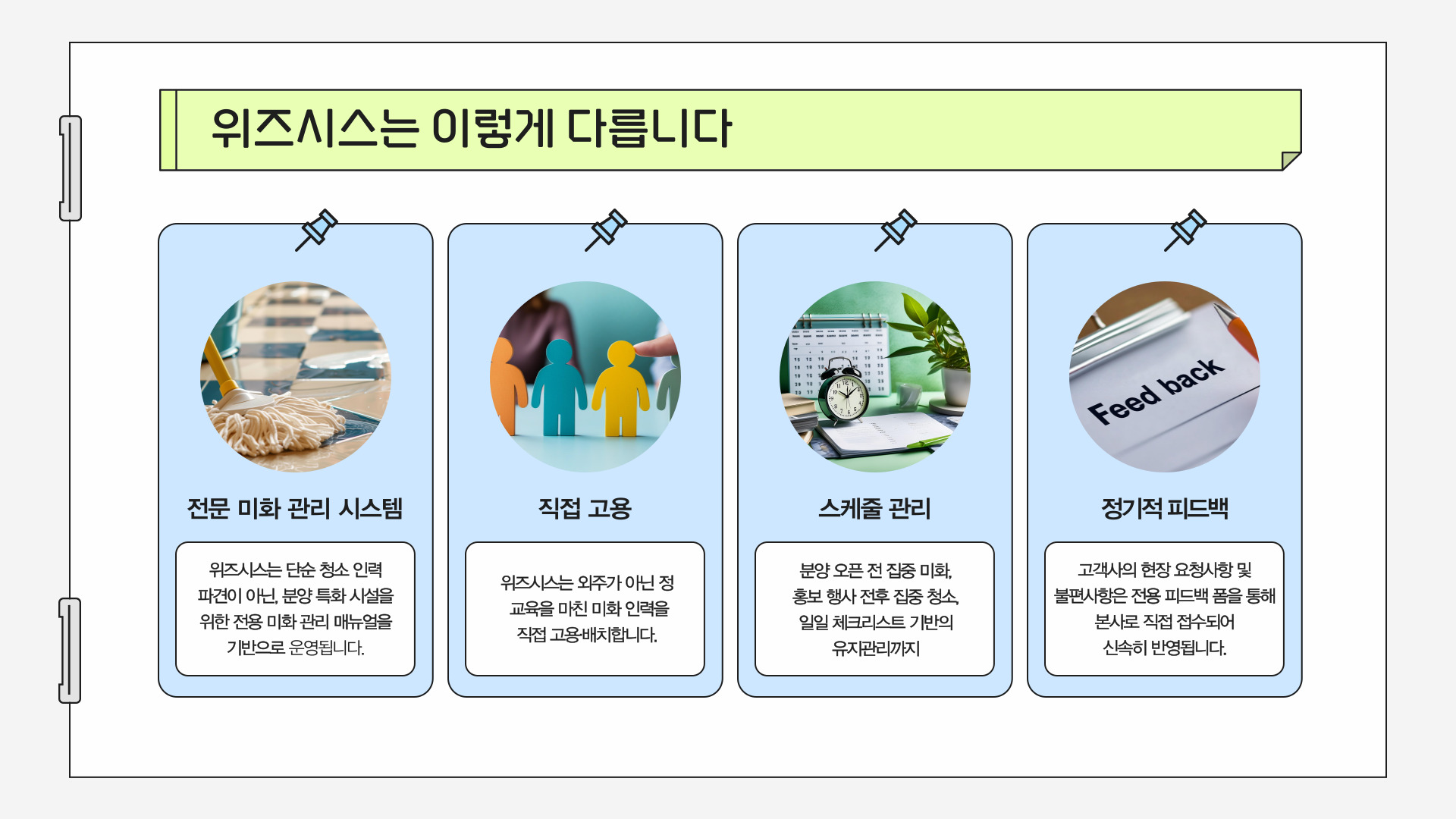 ▶ 위즈시스는 단순 청소 인력 파견이 아닌, 분양 특화 시설을