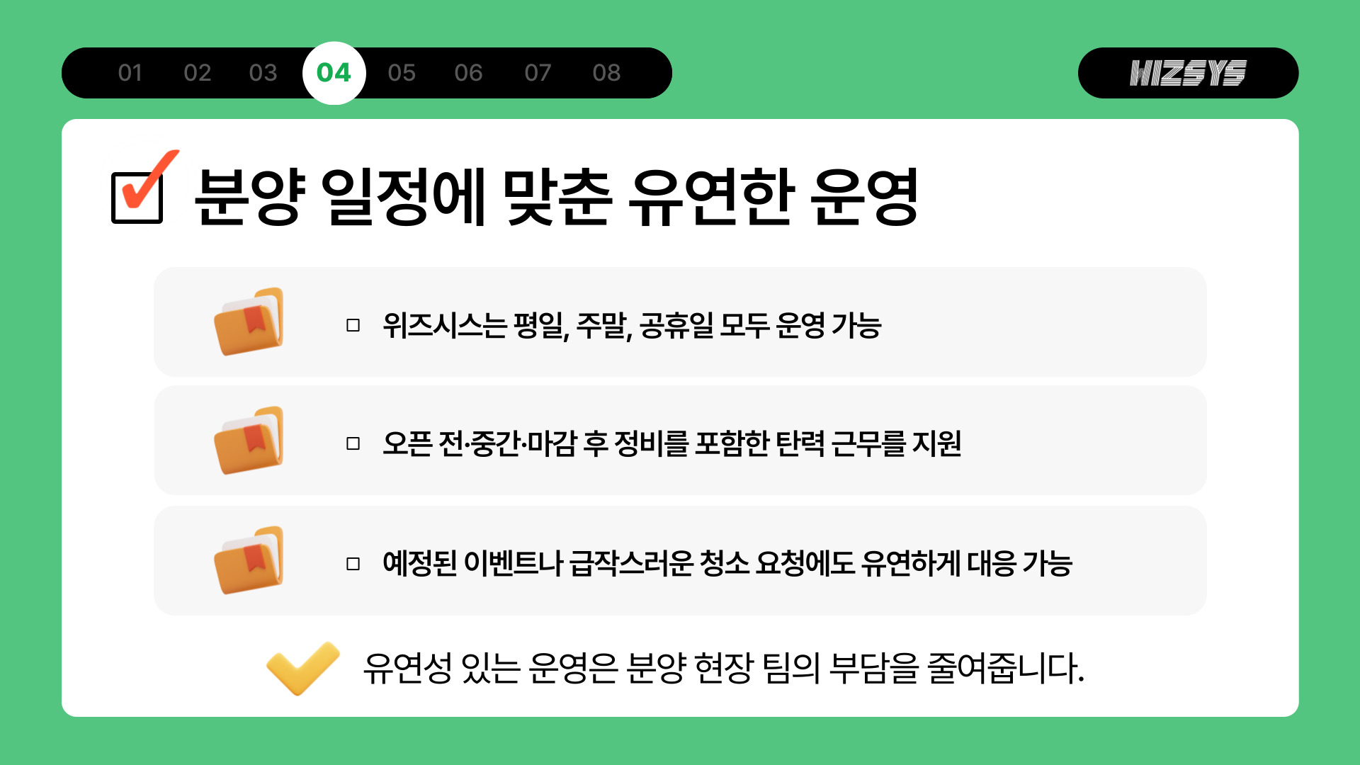 ㆍ위즈시스는 평일, 주말, 공휴일 모두 운영 가능