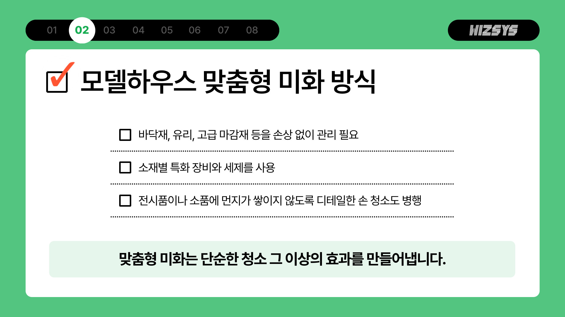 모델하우스 맞춤형 미화 방식