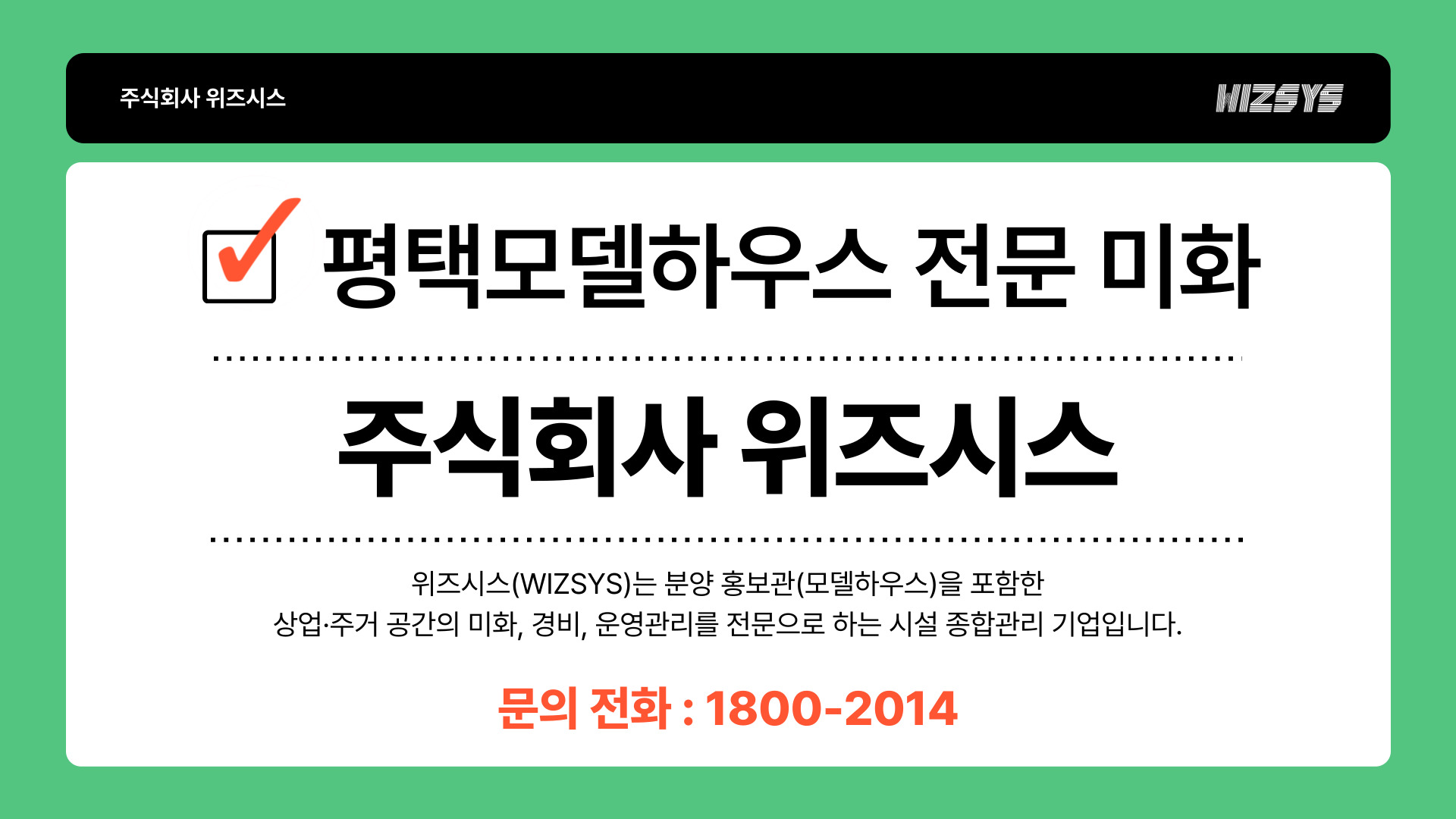 분양홍보관(모델하우스) 미화 전문 위즈시스입니다.